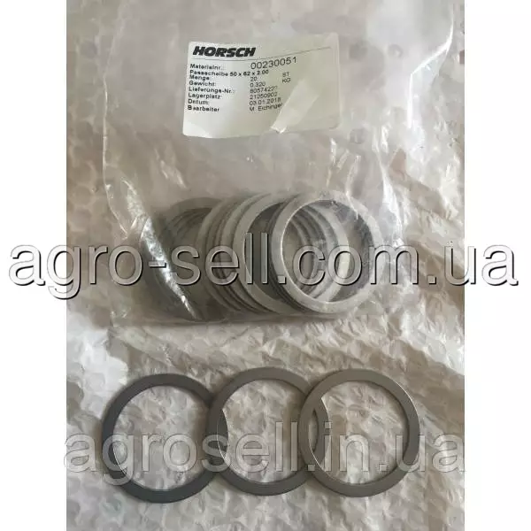 Шайба установочная 50х62х2 сеялки Horsch 00230051 У компании ТОВ "Агро Сел" вы можете приобрести запчасти на Horsch как аналог так и оригинал, всегда рады помочь 0676330344Оплата и доставка